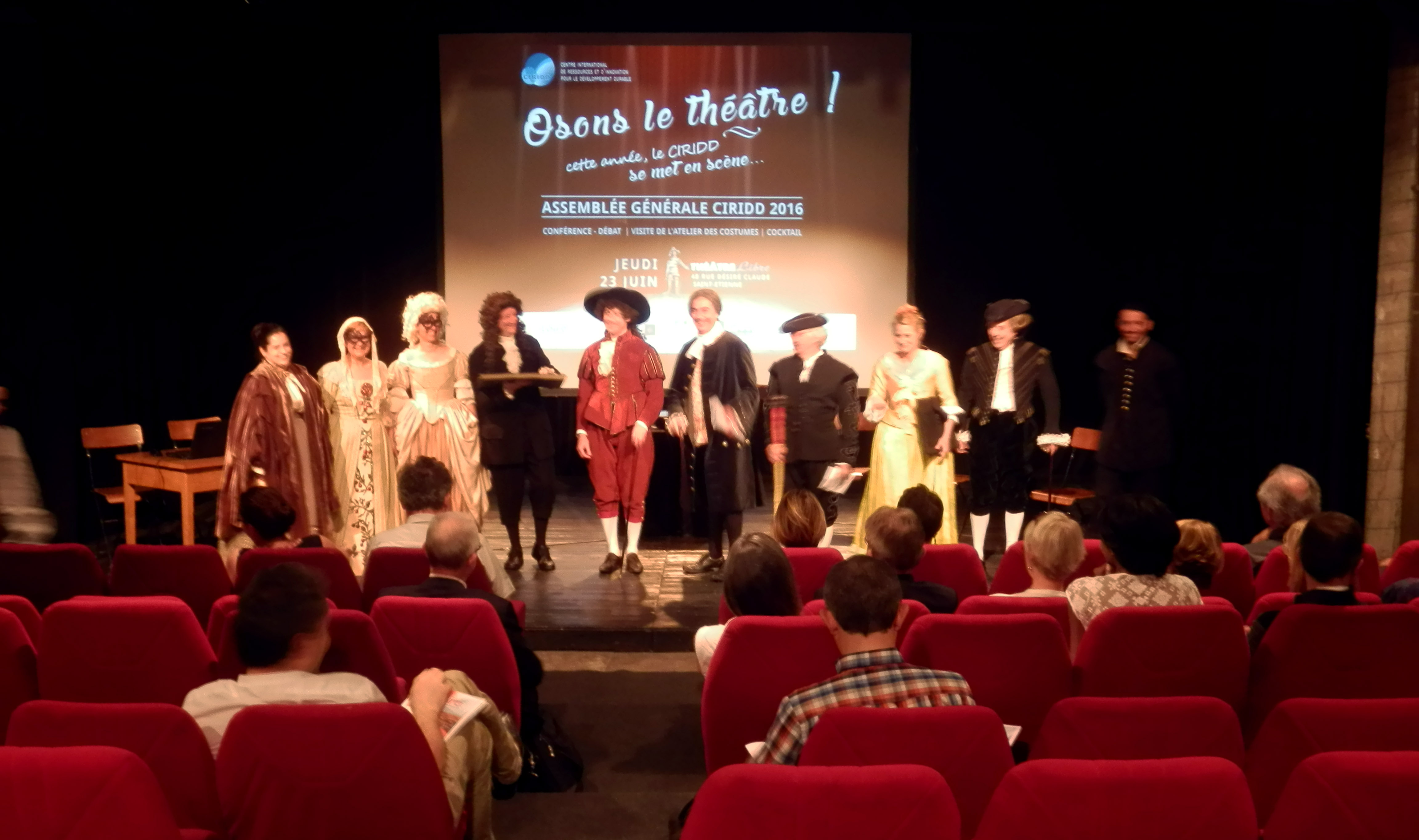 Une grande première au Théâtre Libre! Nous louons notre salle aux entreprises et associations afin qu’elles fassent leurs AG et réunions. Le CIRID en a en pus profité pour offrir une AG costumée à leurs adhérents (location des costumes et habillage réalisés par l’atelier).
